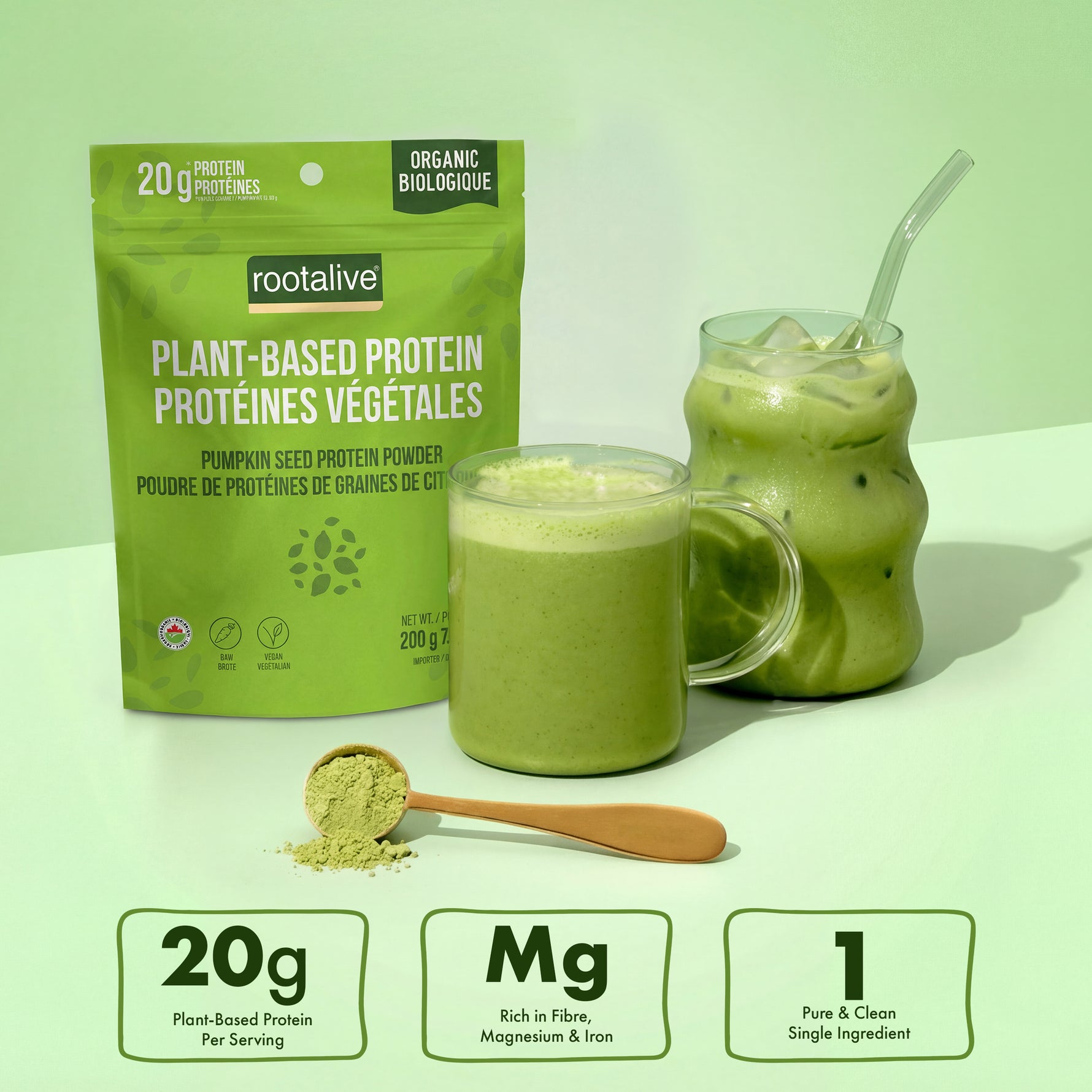 Unit price per- 20g Plant-Based Protein Per Serving Fuel your day with 20 grams of naturally occurring protein from organic pumpkin seeds—perfect for smoothies, shakes, baking, and everyday nutrition.