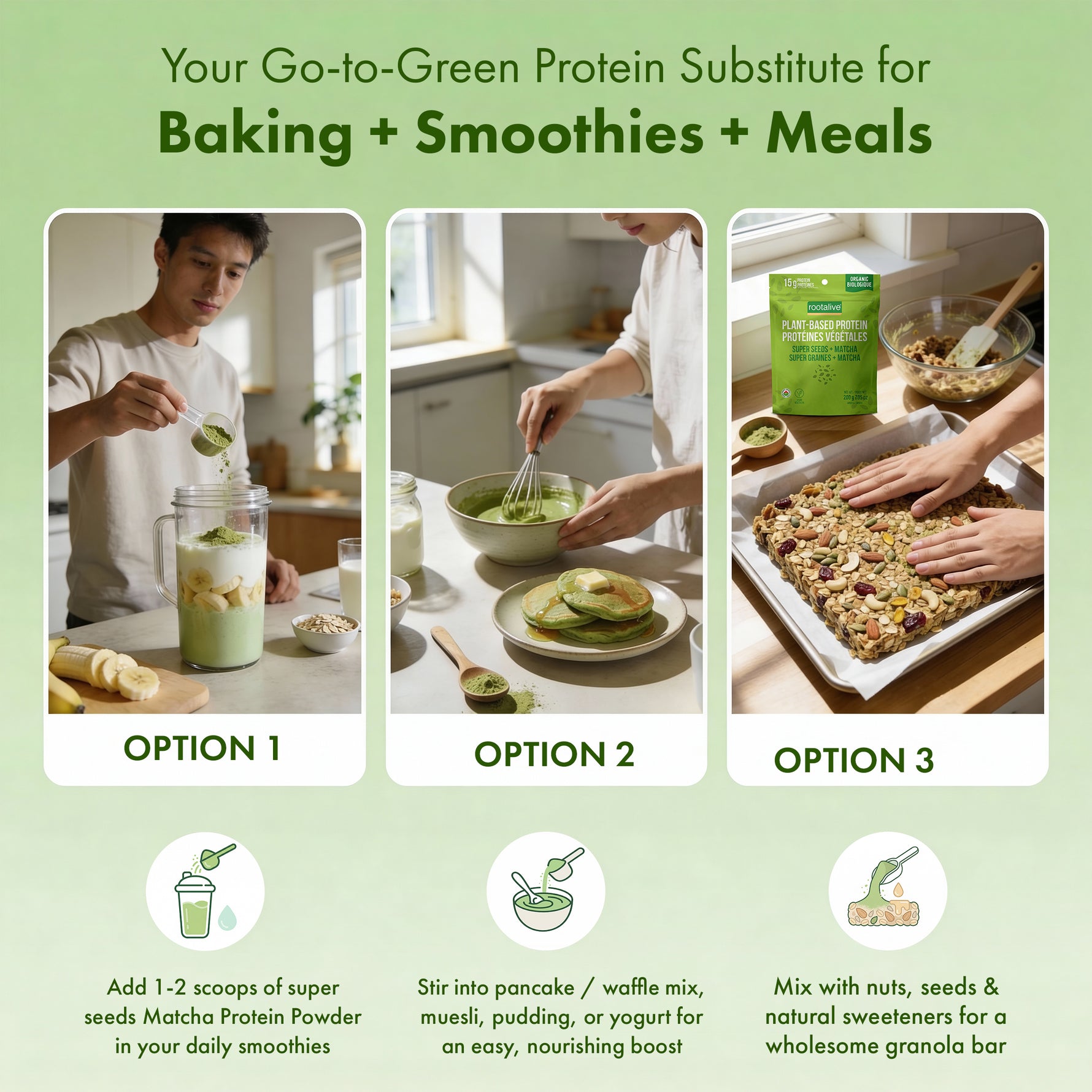 • 🍵 Smooth, Versatile & Easy to Use Perfect for shakes or smoothies, matcha-style lattes, yogurt or parfaits, pancakes, waffles & crepes, or mixed with plant-based drinks like oat or soy milk.
